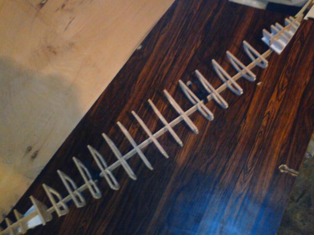 Znám ten odkaz a čerpám z něj pár zkušeností druhých,děkuji.To že jsem se rozhodl pro menší model,je jak kvůli skladování tak i přepravě.Jeden kolos asi 130cm už mám a můžu říct že jsou velké problémy,hlavně z váhou.Jinak trup nejspíše potáhnu balsou,ještě přesně nevím.Jinak jsem postoupil o něco dál,ještě to není slepené ani obroušené,ale práci to dalo pěknou.