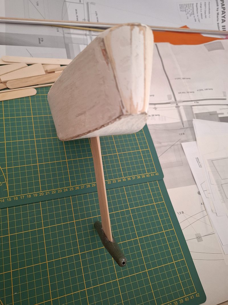 Přidám i ten včerejší "posun" :) Dnes bych chtěl udělat to napojení a zpevnění ploutve kýlu s trupen.